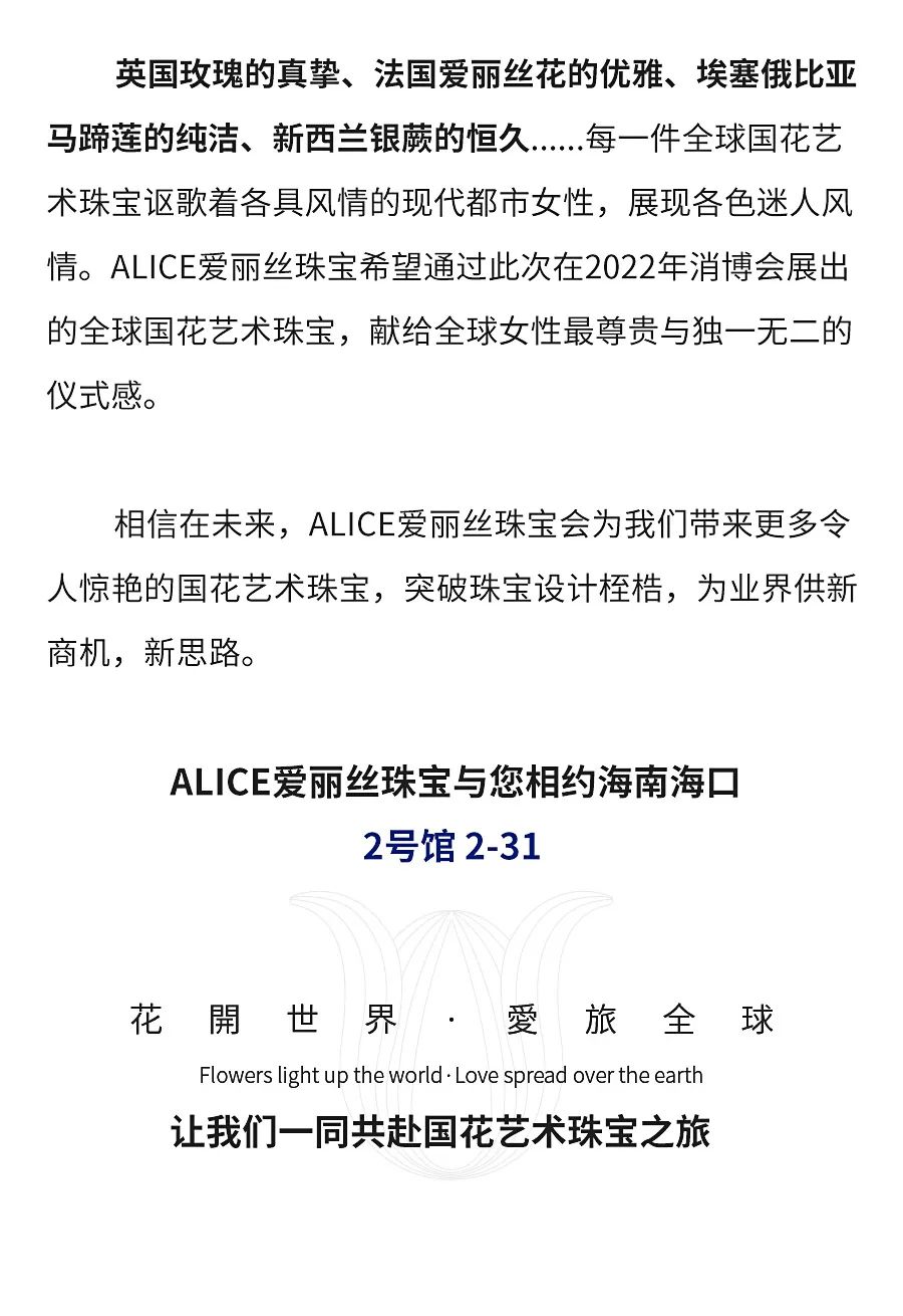 第二届中国国际消费品博览会,爱丽丝(ALICE)珠宝将全球首发新品